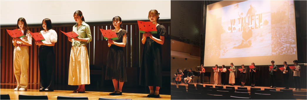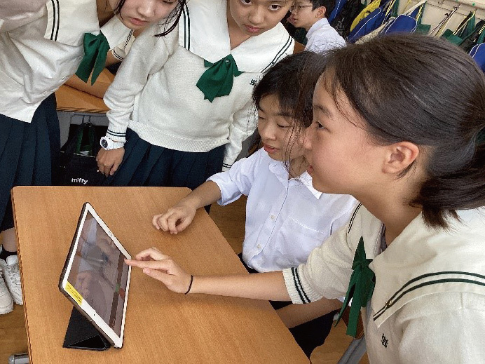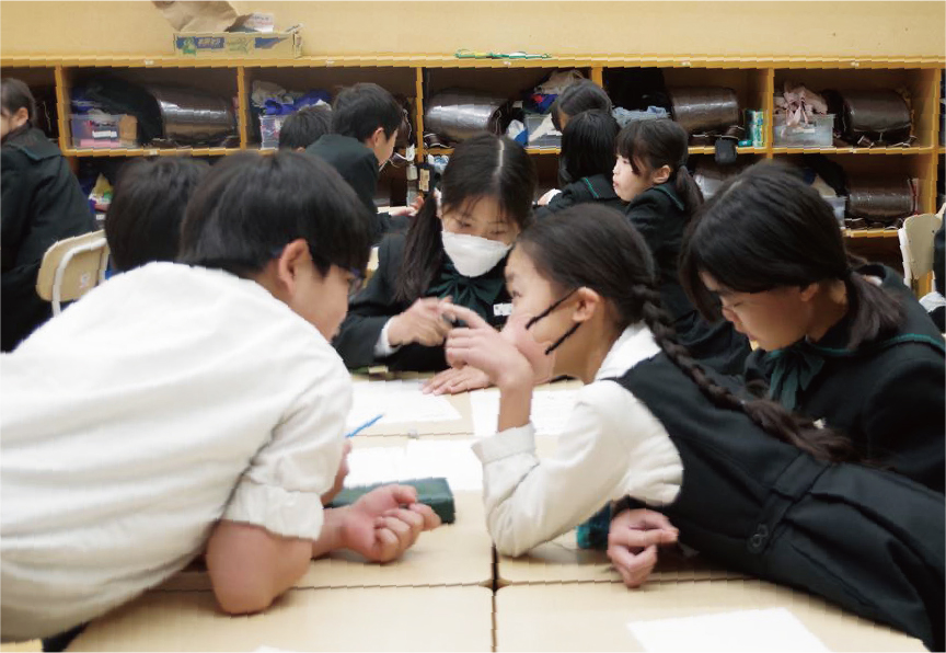 小学生は自分の気持ちを言葉で伝え、感謝のメッセージやプレゼンテーションを通して、相手に届けることを意識します。言葉を介して友達や社会とつながり、平和を創り出すことを目指します。