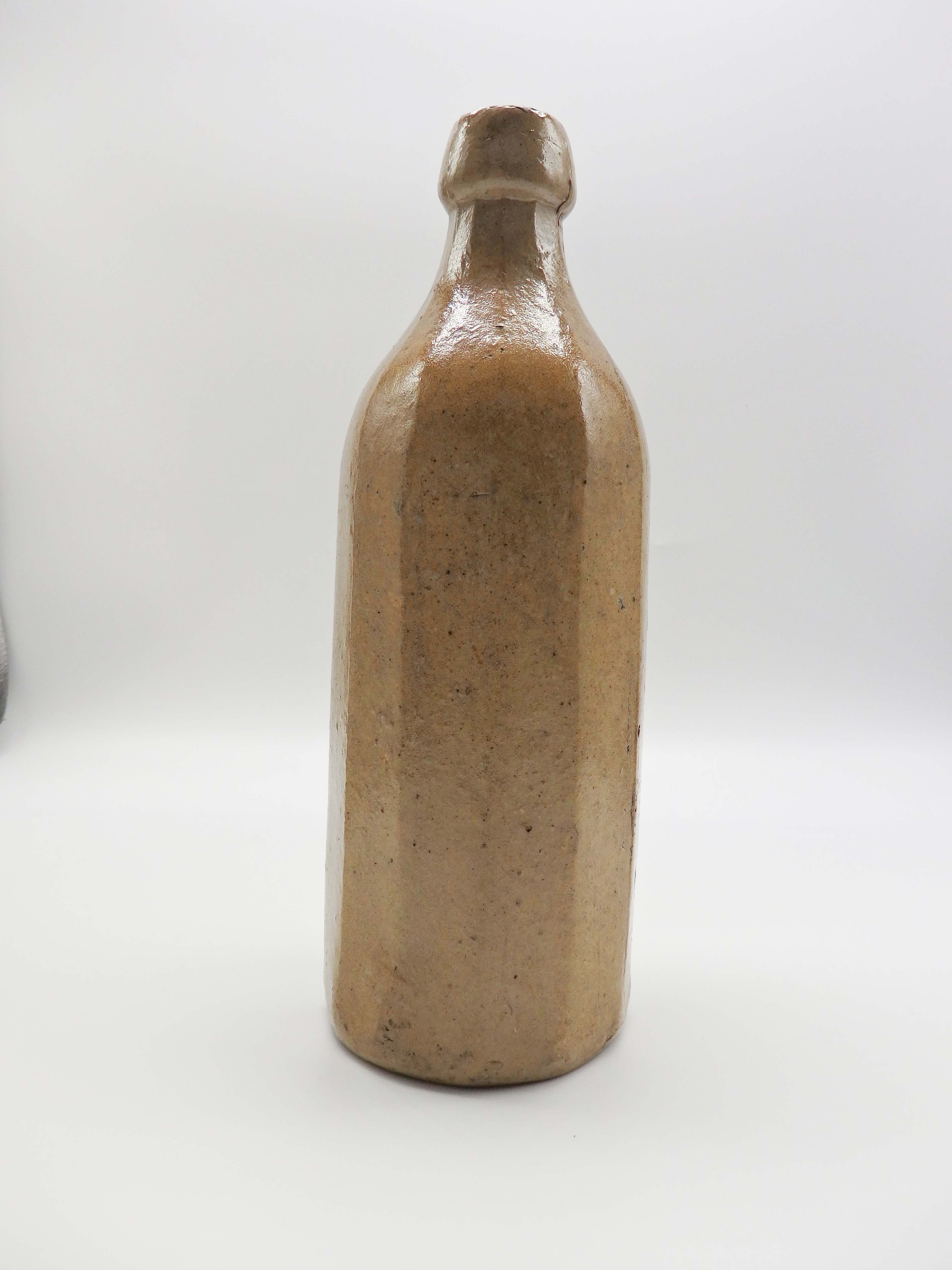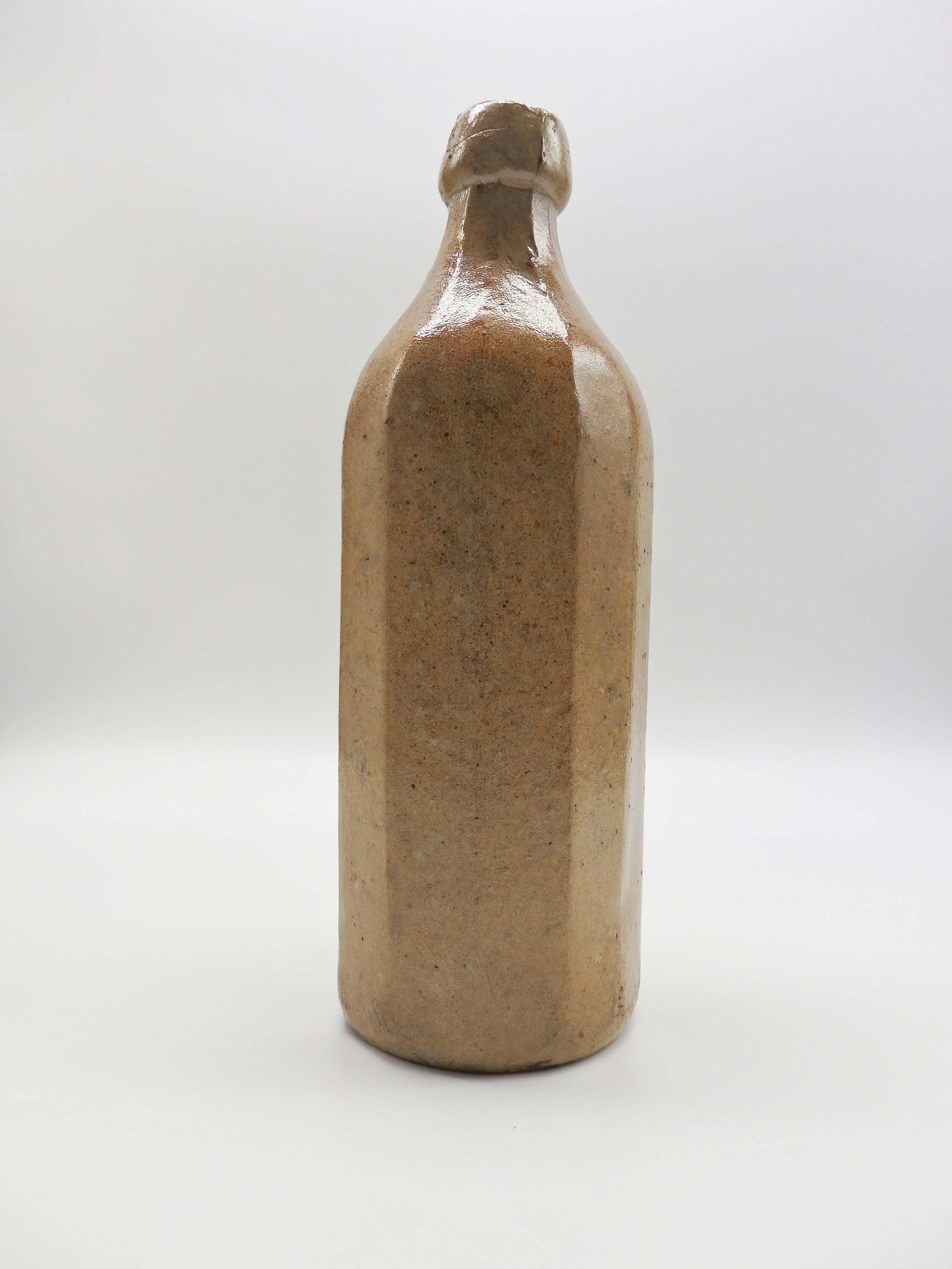 塩釉を施したせっ器(ストーンウェア)の瓶。ガラス製のジンボトル以外にも、ジンを入れるための容器として、このようなせっ器の瓶が使用されていた。(「せっ」は火へんに石と書く)