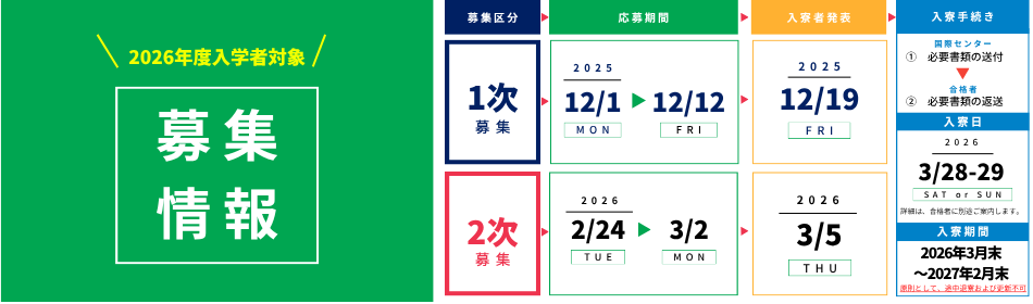 80名(うち、留学生40名) | 55名(うち、留学生30名) | 50名(うち、留学生30名) | |