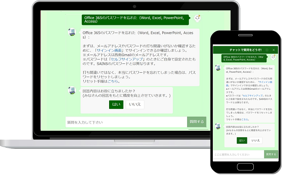 ※AIチャットボットは、あらかじめAIが学習した内容に関する質問に、自動的に応答してくれるシステムです。