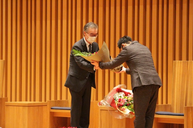 講義終了後、ゼミ生や教職員、卒業生から花束贈呈が行われ、聴講した学生・教職員、卒業生から大きな拍手が贈られました。