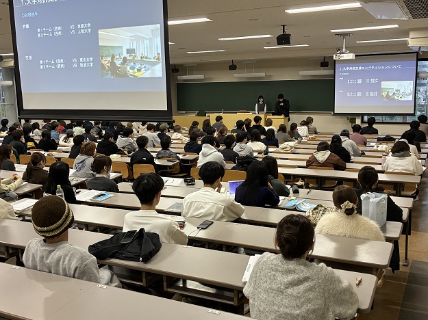 11月29日(土)、法学部「国際商事仲裁」、12月2日(火)、「国際ビジネスの法と交渉」(共に担当:多田望教授)の講義において11月15日(土)、16日(日)に上智大学で開催された第24回大学対抗交渉コンペティションの成果報告会が、出場した国際取引法ゼミ生によって行われました。