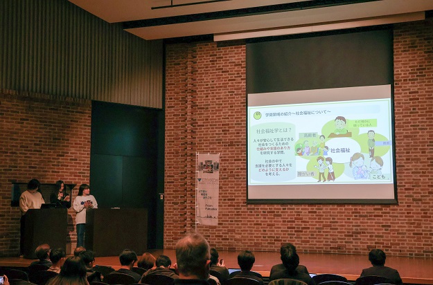当日は、3ブロックに分かれて、計24チームが出場し、予選を実施しました。テーマは「社会課題と私たち~社会の抱える問題と学術的アプローチの意義~」で、各チームが様々な社会課題ついて、自身の専門分野による解釈や解決策について提案を行いました。審査の結果、各ブロックの上位2チーム、計6チームが本選に進出。本選では、商学部の学生による「M&Aによる公衆衛生の促進」や「オーバーツーリズムの解消」、「エシカル商品のマーケティング戦略」をテーマとした発表や、法学部の学生による「ディープフェイクボイスの規制および声の肖像権保護」をテーマとした発表など、近年の社会課題に着目した完成度の高い発表が行われました。最優秀賞には、人間科学部社会福祉学科・中村秀郷准教授のゼミ生による「障がいのある子どもと親の居場所の創出」をテーマとした発表が選ばれ、10万円の賞金が贈呈されました。審査員からは、社会福祉実習を通じて知った課題を踏まえ、ピアサポートの場の提供や地域とのつながりの創出といった具体的な支援策を提示していた点が高く評価されました。