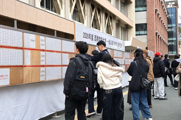5号館前の掲示板に合格者の受験番号が張り出されると、受験生やご家族などが掲示板に駆け寄る姿が見られ、賑やかな合格発表となりました。合格された皆さん、おめでとうございます。なお、入学式は4月1日(水)に行われる予定です。