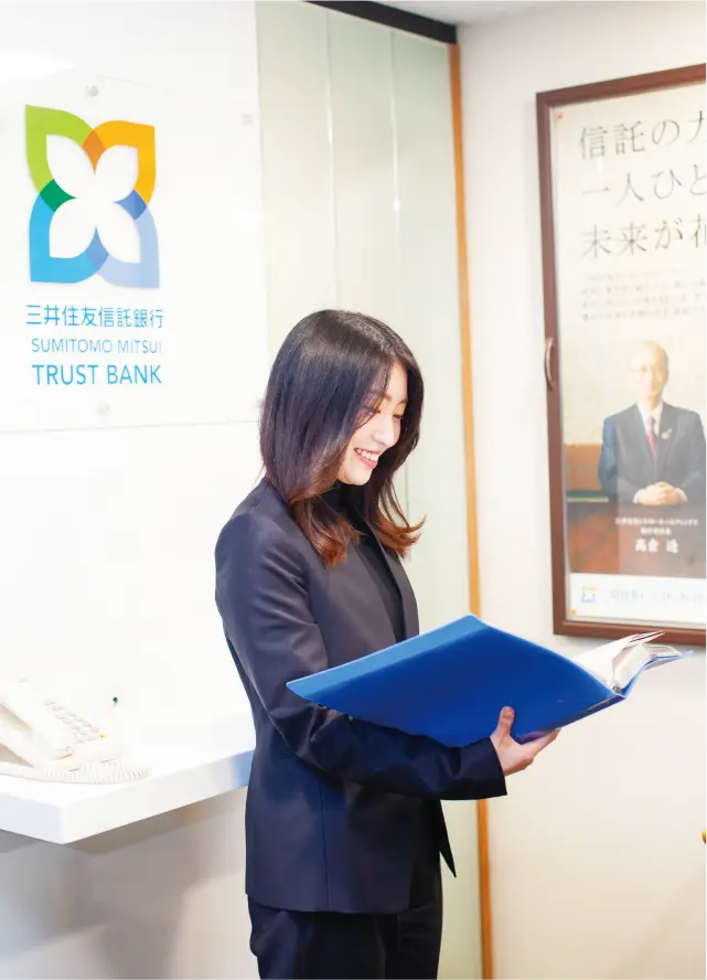 その広い領域をカバーするためにも日々の勉強は欠かせません。特に入社1、2年目は業務に必要な資格の取得が多く、隔月のペースで資格試験を受けていました。これまで信託実務、証券アナリスト、銀行業務検定など約10種の資格を取得。業務と並行しての勉強は大変でしたが、知識が増えるにつれて、経済の仕組みや企業の構造など、社会全体を俯瞰できる武器が増え、仕事のやりがいや充実感も一段と高まりました。